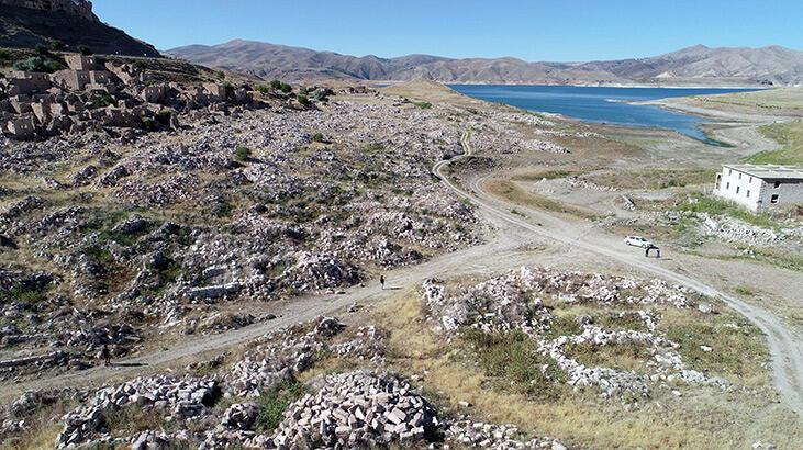 Baraj suları çekildi, eski mahalle ortaya çıktı