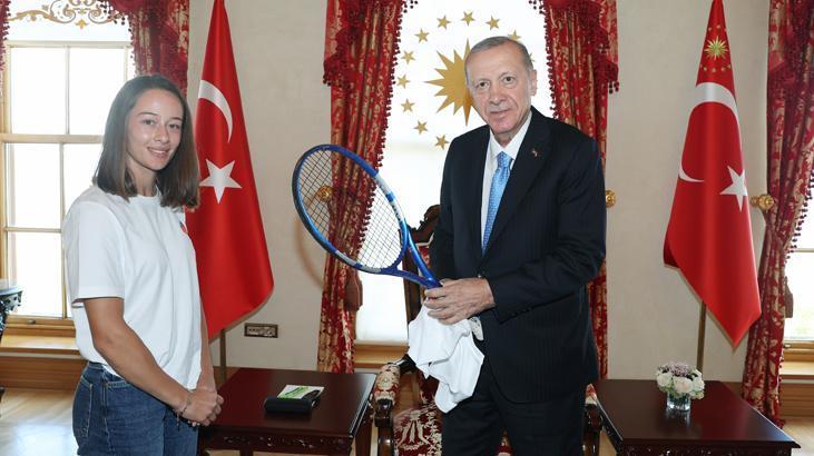 Cumhurbaşkanı Recep Tayyip Erdoğan, milli tenisçi Zeynep Sönmez’i Dolmabahçe Çalışma Ofisi’nde kabul etti.