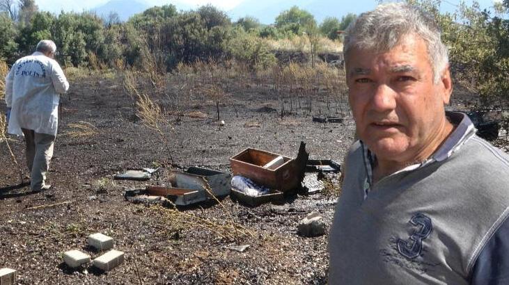 7 kovanı küle sönen arıcı Mehmet Saygın, “Ben geldiğimde yangın başlamıştı. Arı kovanlarım vardı kurtarmaya çalıştım. Rüzgarın etkisiyle anız yangını birden büyüde ve arılarımı kurtaramadım. 7 kovan arım telef oldu. Kovanlarımı kurtarmaya çalışıyordum ama olmadı. Ellerim ve ayaklarım yandı” dedi.