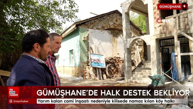 Gümüşhane’nin Torul ilçesindeki bir köyde yıllar önce başlanan cami inşaatının maddi sorunlar nedeniyle tamamlanamaması nedeniyle tek odalı tarihi kiliseden camiye çevrilen bina içerisinde namaz kılmak zorunda kalan köy halkı camilerinin bitirilmesi için destek bekliyor.